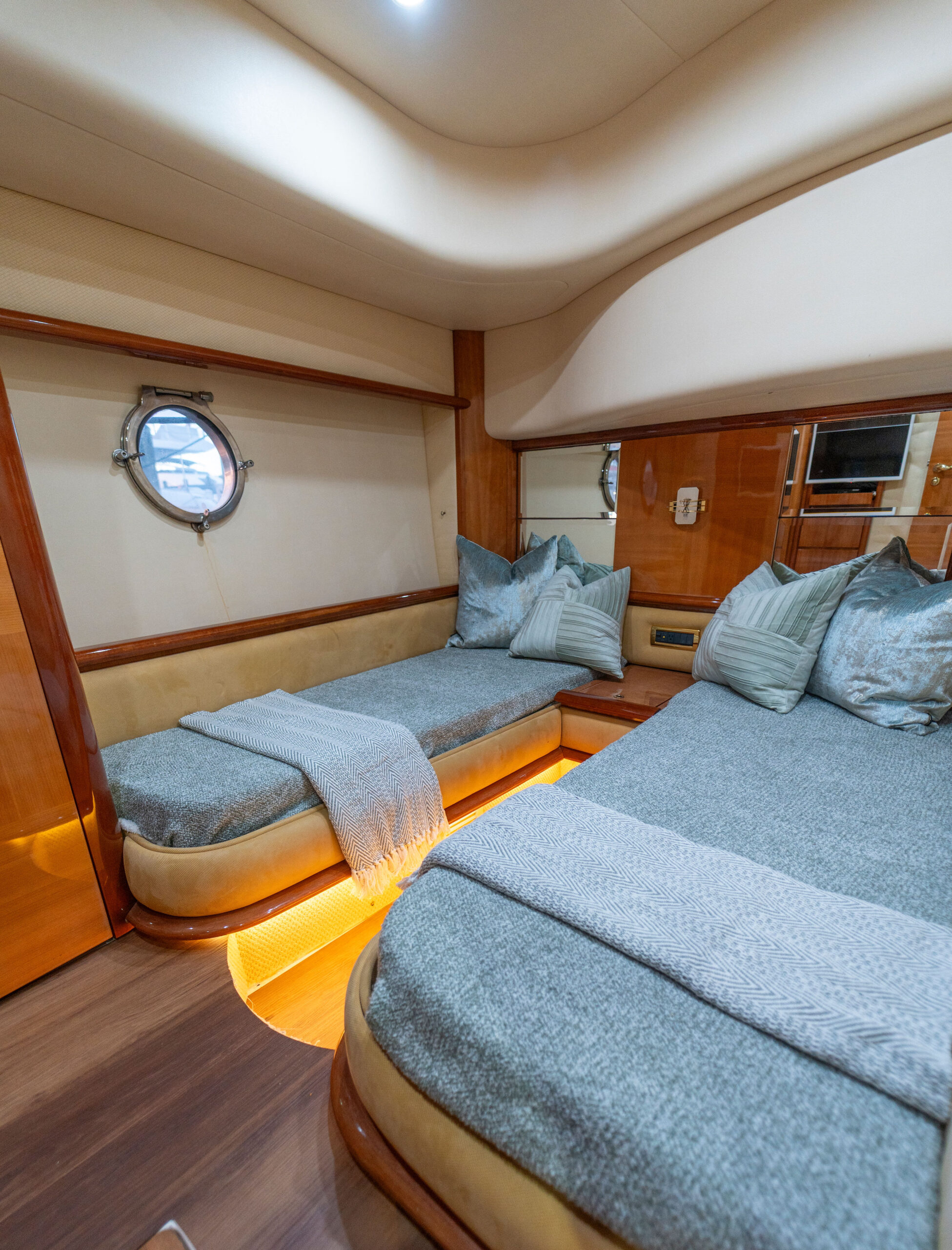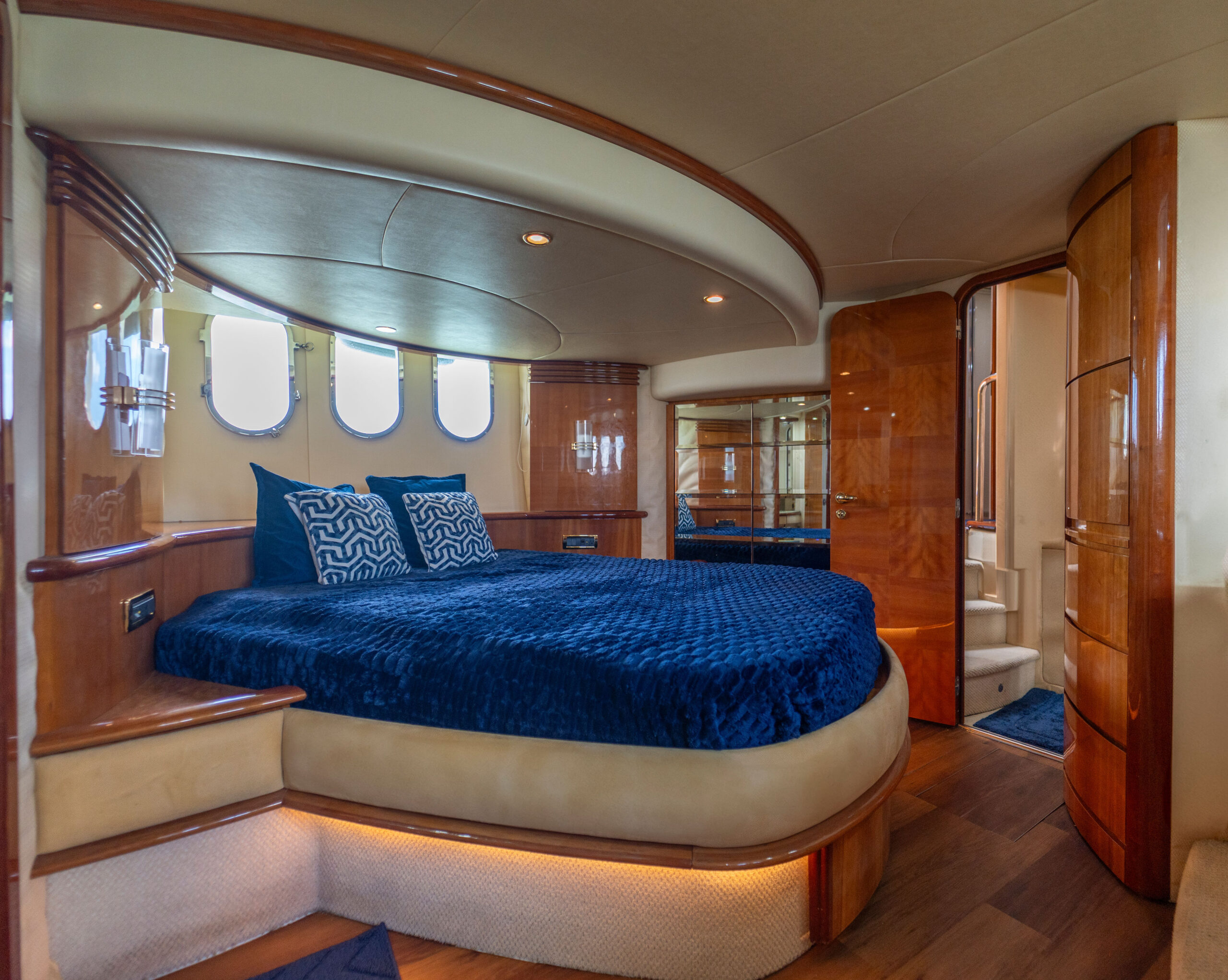 3–4 staterooms with luxury finishes (sleeps 6–8 guests)